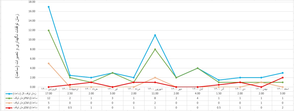 فرم اکسل محاسبه روند شاخص انواع توقفات نگهداری و تعمیرات